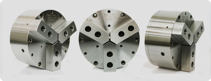 1. Round jaws air chuck comes with integrated air piston. The chuck is hermetically sealed, stronger, and 30% faster than standard T slot one. Chuck size ranges from 64MM up to 170MM. Speed range from 4500 rpm for a large size to over 10,000 rpm for the smallest chuck size.